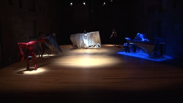 Alongside a marimba player, a dancer and an actor, Claire performes her handbalancing. Dressed in a red glitter suit with fins, suggesting a water creature she takes on different forms. Sitting or on upside down, balancing on her hands. Still, like a statue. The performance was restaged at Something Raw Festival in Frascati, where Claire took on the part of acrobat.