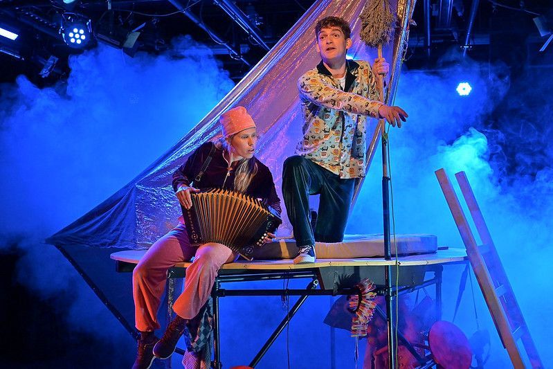‘Buurman Ondersteboven’ is a playful invitation to use creativity to flip big and small problems around, look at them upside down, and solve them in unexpected ways. A performance full of dance, slapstick, live music, songs, and help from the children.’
